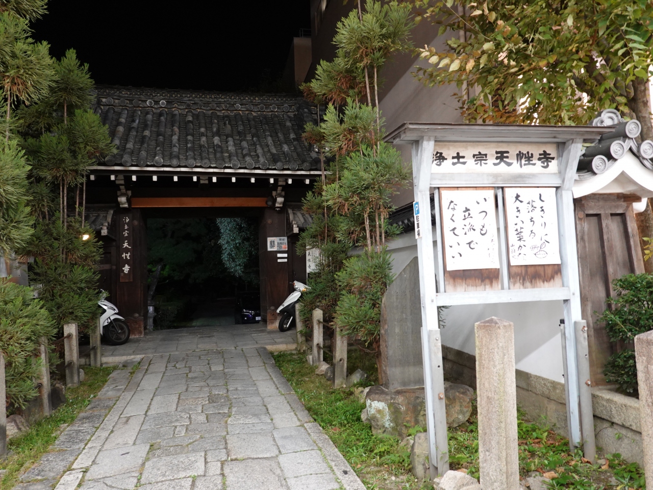 「天性寺」は、東西を河原町通りと寺町通りに、南北は御池通りと三条通りに挟まれるという繁華街のど真ん中にあるお寺です。知恩院の末寺にあたり、創建は天正五年です。