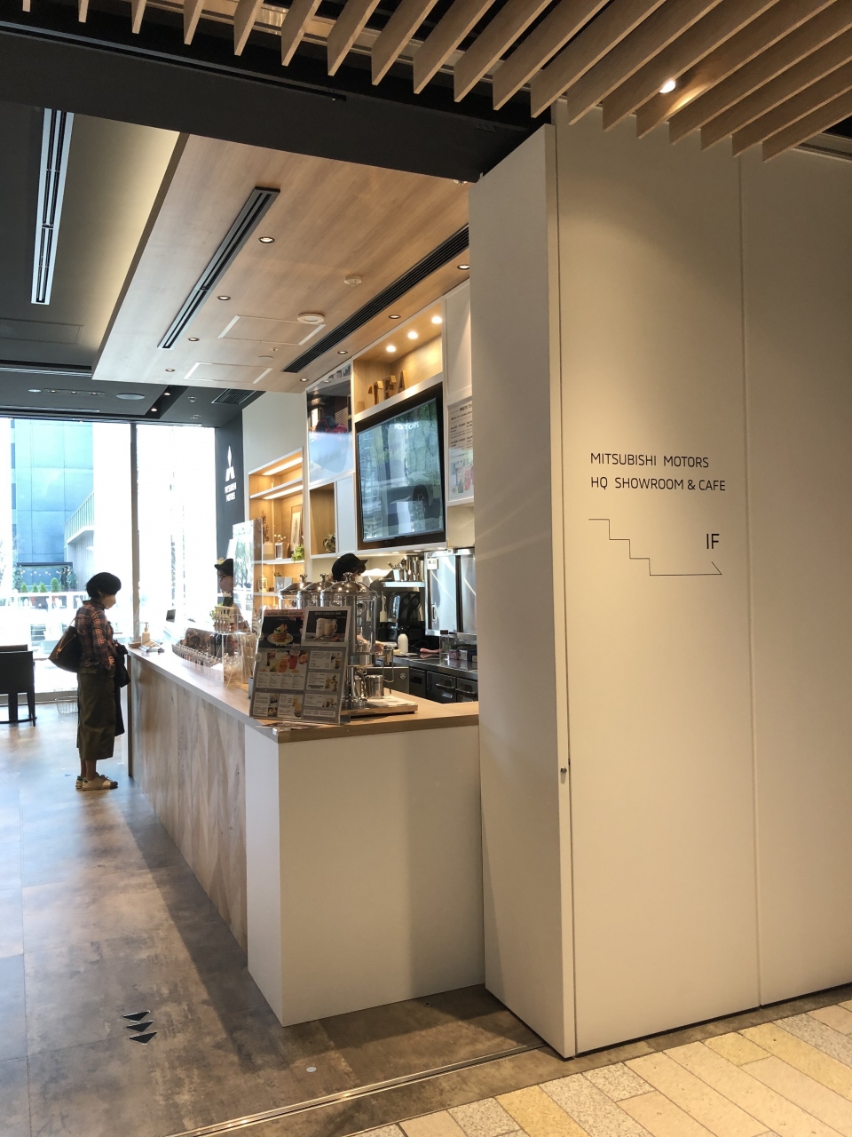 東京のJR「田町」駅から徒歩すぐにある、三菱自動車工業本社ショールームの、2Fにあるティースタンド(カフェ)です。