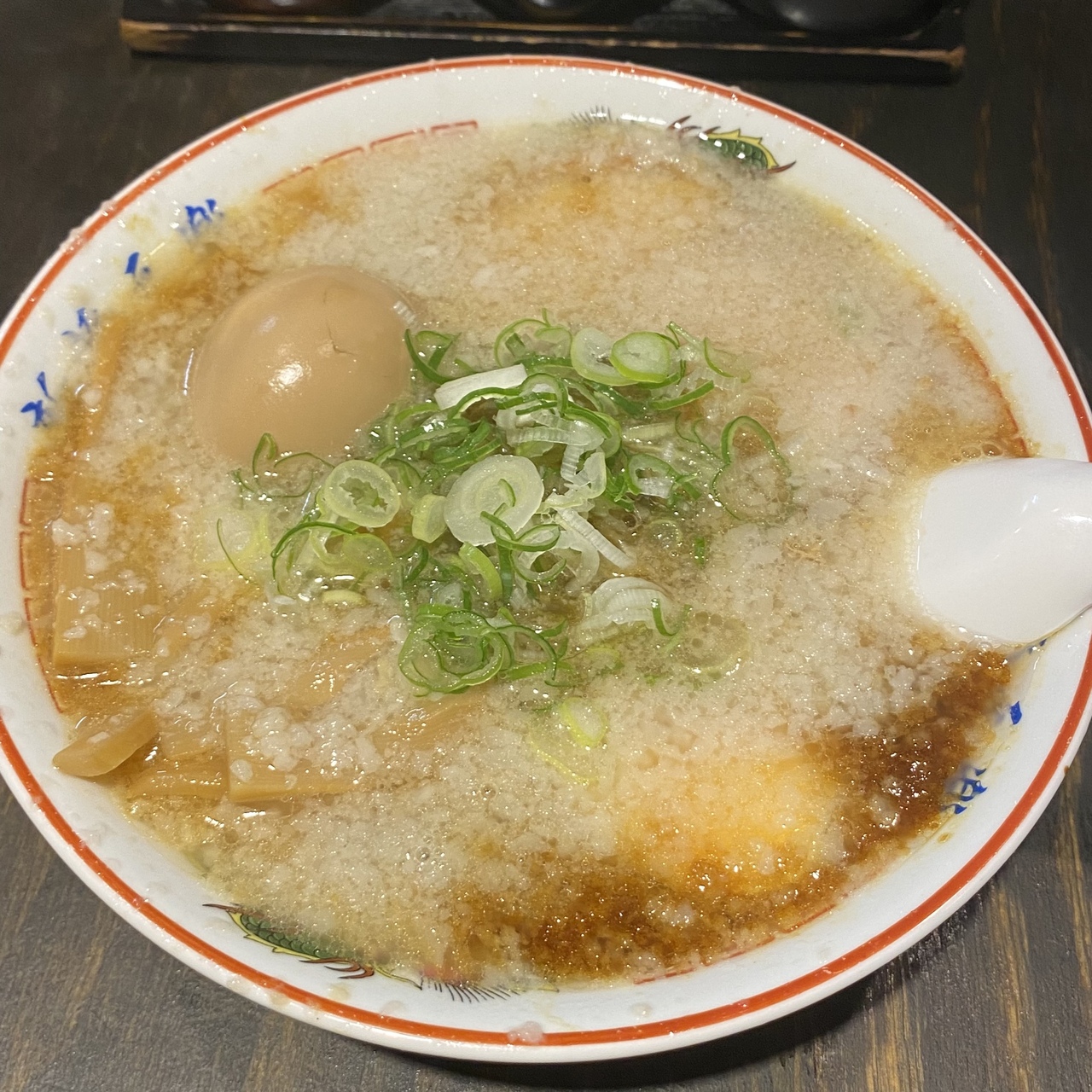 初訪問でしたので、特製元ラーメンに、味玉をプラスしていただきました。お店の方からは脂が多めと一言案内がありましたが、そのままでお願いいたしました。配膳されてきたときは脂の多さを感じましたが、みためほどでもなく、おいしくいただけました。濃い口の醤油ラーメンとなっており、麺にも色がついておりました。食券方式となっておりました。