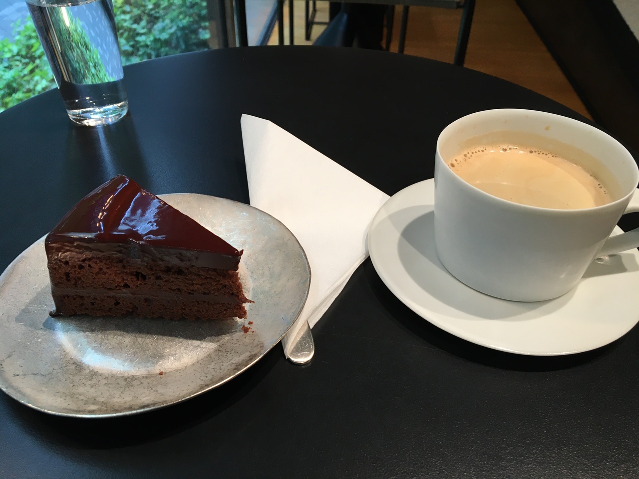 水天宮にあるミュゼ浜口陽三ヤマサコレクションの中にある小さなカフェです。ヤマサ醤油の黒蜜風醤油が入ったマーブルアイスも気になりましたが、チョコレートケーキのセットをいただきました。このケーキが、なんと、鎌倉山の『House of Flavours』から取り寄せたものと知って驚愕!鎌倉山のお店で食べたことがあり、美味しさに感動したケーキを東京でも食べることができて感激でした。