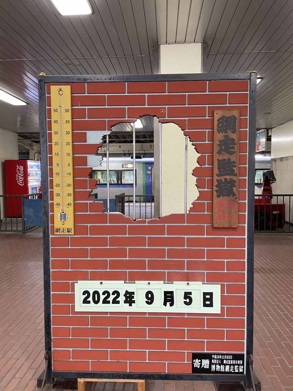 駅の看板が珍しい縦書きで、網走刑務所を出所した人がここから電車に乗る際に、これからはまっすぐ生きていってほしいという駅員さんたちの望みを込めてまっすぐの縦書きにしたそうです。