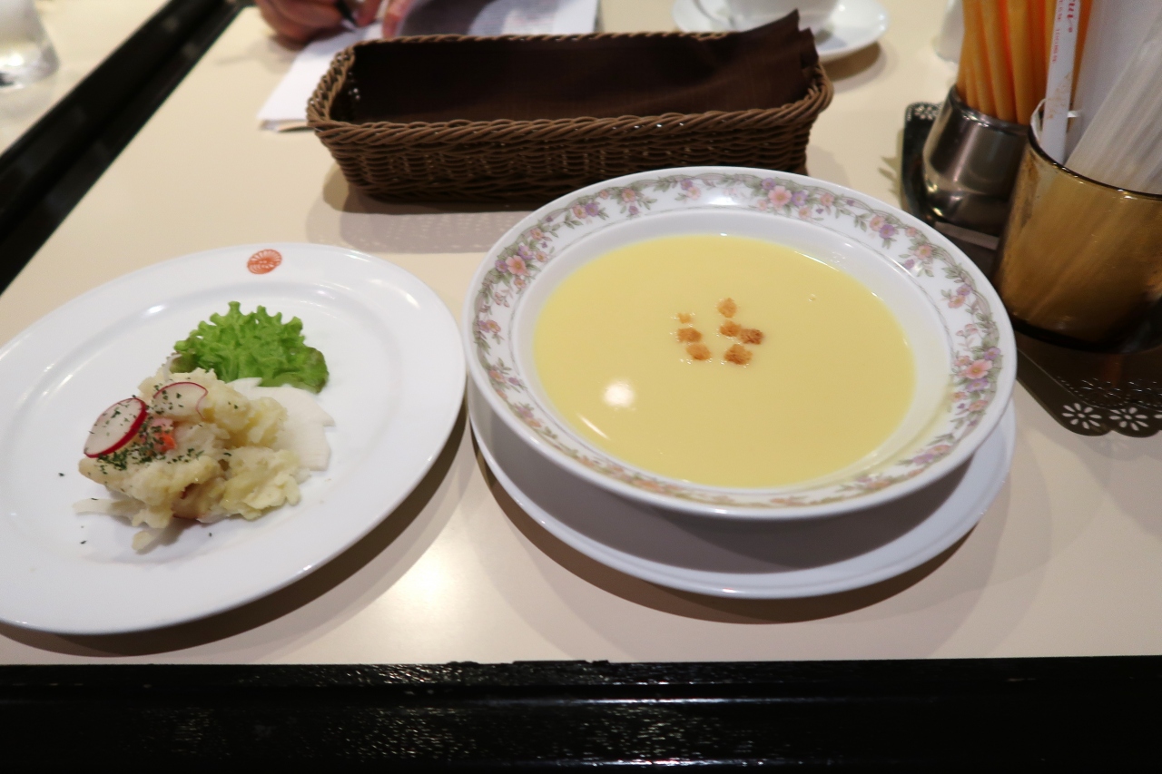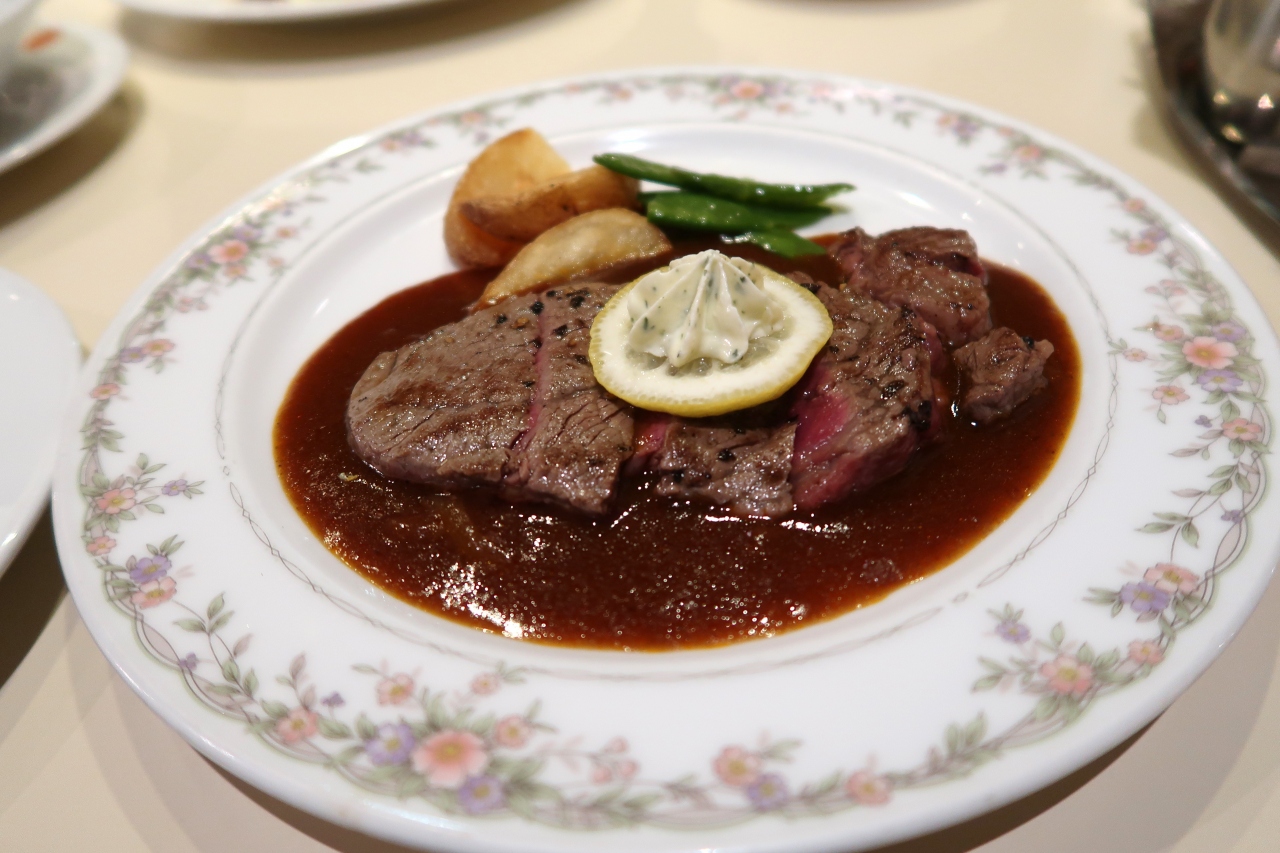 ガウディ建築でよく見かける放物線アーチの塔が印象的な、国登録文化財に指定されている西洋館レストランです。昭和49年にパリのカフェを再現して改装された1階パーラーで夕食をとりました。終日、お手頃価格で利用しやすいセットメニューが揃っていました。ハイカラグリルスペシャルセット、フィレステーキ定食をいただきました。南座の前にあり、観劇の前後に利用する人もいるからなのか、お料理の提供速度も早いので、時間に余裕がない時でも、きちんとした食事をさっと済ませることができ、便利だと思います。