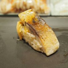 炙りトロ鯖寿司がとても脂がのってて美味しかったです。炙ってあることで香ばしさがプラスされていました。