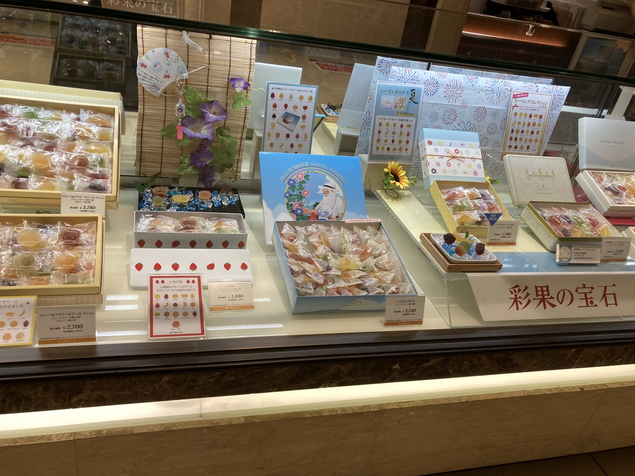 以前から気になっていて、デパ地下で見かけていたお店が、日本橋三越の食品売り場にもあり、立ち寄りました。世界中から選ばれた果物の果汁と果肉を使ったフルーツゼリーの専門店です。名前の通り、一粒一粒が宝石のような見た目でした。