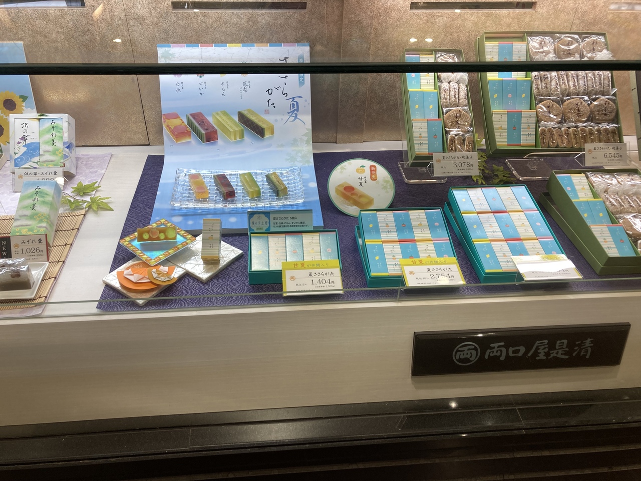 東京には「とらや」がありますが、こちらは名古屋のようかんなどで有名なお店で、日本橋三越本館地下1階食品フロアの「とらや」の近くにありました。見た目も涼しげな美しい和菓子が並んでいて、選ぶのに時間がかかりました。