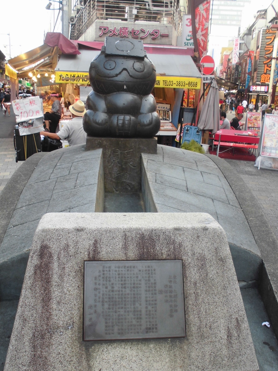 上野駅は新幹線も止まる一大ターミナル駅ですが当初は駅は作られない予定でした(東京駅からも近いですし)。ですが積極的な誘致の末上野にも新幹線が止まるようになりました。それを記念したものですが、上の像がかわいいので一見すると新幹線とは関係なさそうに見えますね。