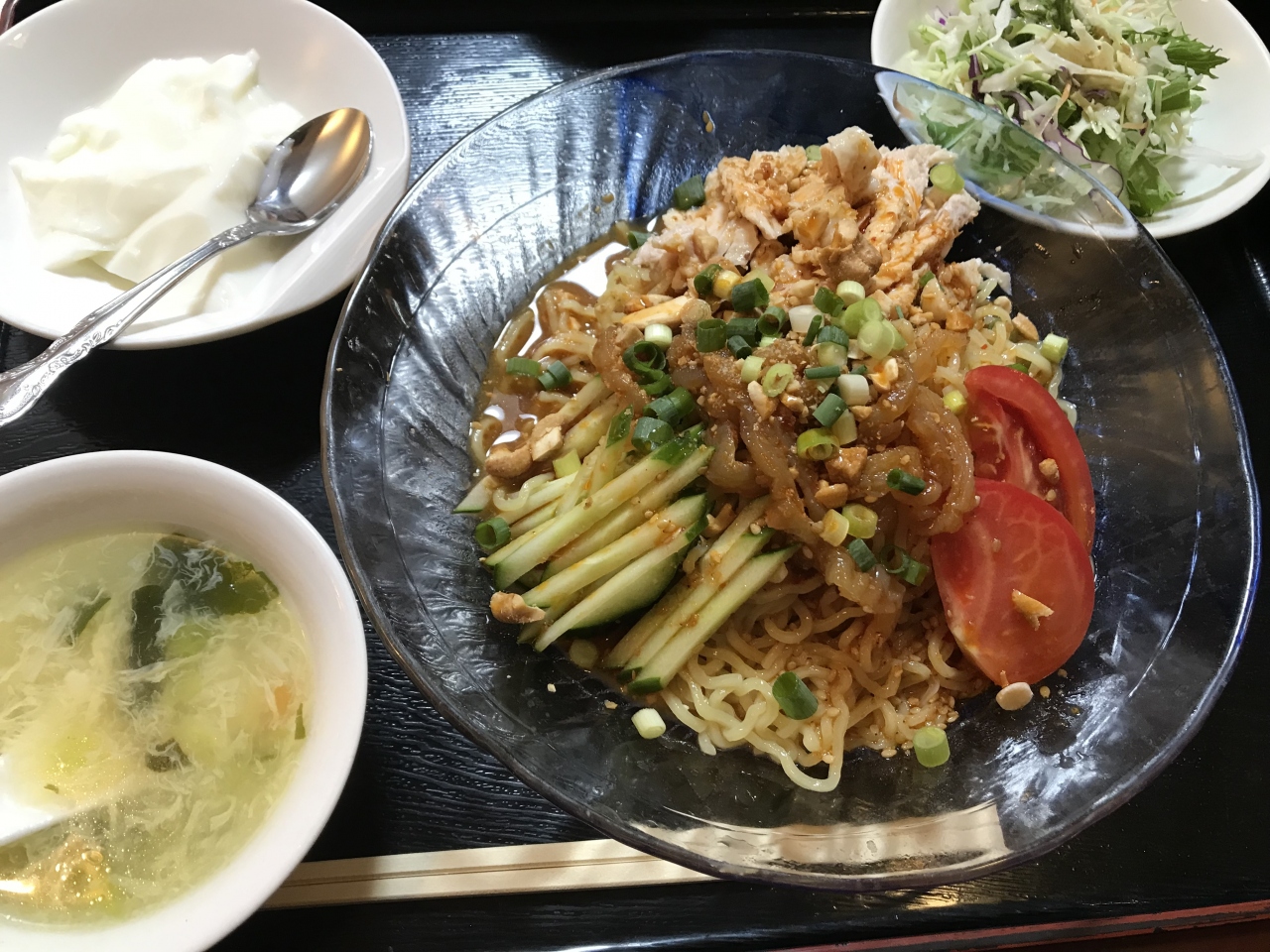 ちぢれ麺に、ややピリ辛のたれがよく絡み、とり肉も柔らかくてさっぱりした味わいでした。