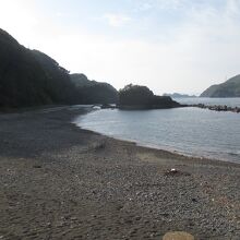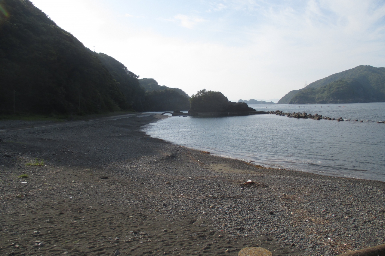 下梶寄(しもかじよせ)海水浴場は、水ノ子島海事資料館の前といったところで、細長い鶴見半島のほぼ先端に近いところにありました。ここから先には海水浴場はありませんから、鶴見半島最東端の海水浴場となります。砂浜はなく砂利の浜辺です。ここはイカ釣りのポイントだそうで、その釣りのお客様も多く訪れるところだということです。また、ここはフリーテント・エリヤとなっているのでキャンプも可能です。
