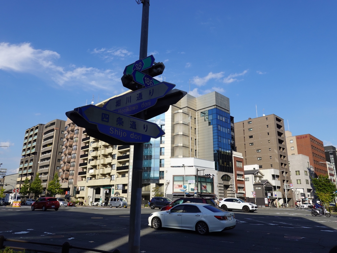 四条通りは、京都市の主要道路のひとつで、市街を東西に貫いています。東は八坂神社、西は松尾大社までで、四条河原町近辺は京都屈指の繁華街ですが、西に進むにつれ人や車も少なくなり、のんびりとした雰囲気が感じられるようになります。八坂神社から松尾大社までは約8.5キロありますが、その変化を楽しみながら徒歩で散策してみるもの面白いと思います。