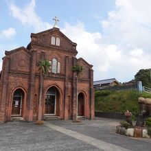 福江港から車で20分ほど、福江島の北部地域にある教会です。この楠原地区は、1797年六方の浜から上陸した第1陣の外海キリシタンが移住、開墾した地区だそうです。初めは、仏教徒を装い穏やかな暮らしができていましたが、、明治時代初期に、長崎県五島列島のキリスト者が 過激な迫害を受けた壮絶悲惨な事件、五島崩れがこの楠原にも及び、信者が捕らえられたそうです。その後高札などが外された1912年、レンガ造りの境界が建てられたそうです。そういった悲しい歴史の飲み込んで、静かに立っているように感じました。