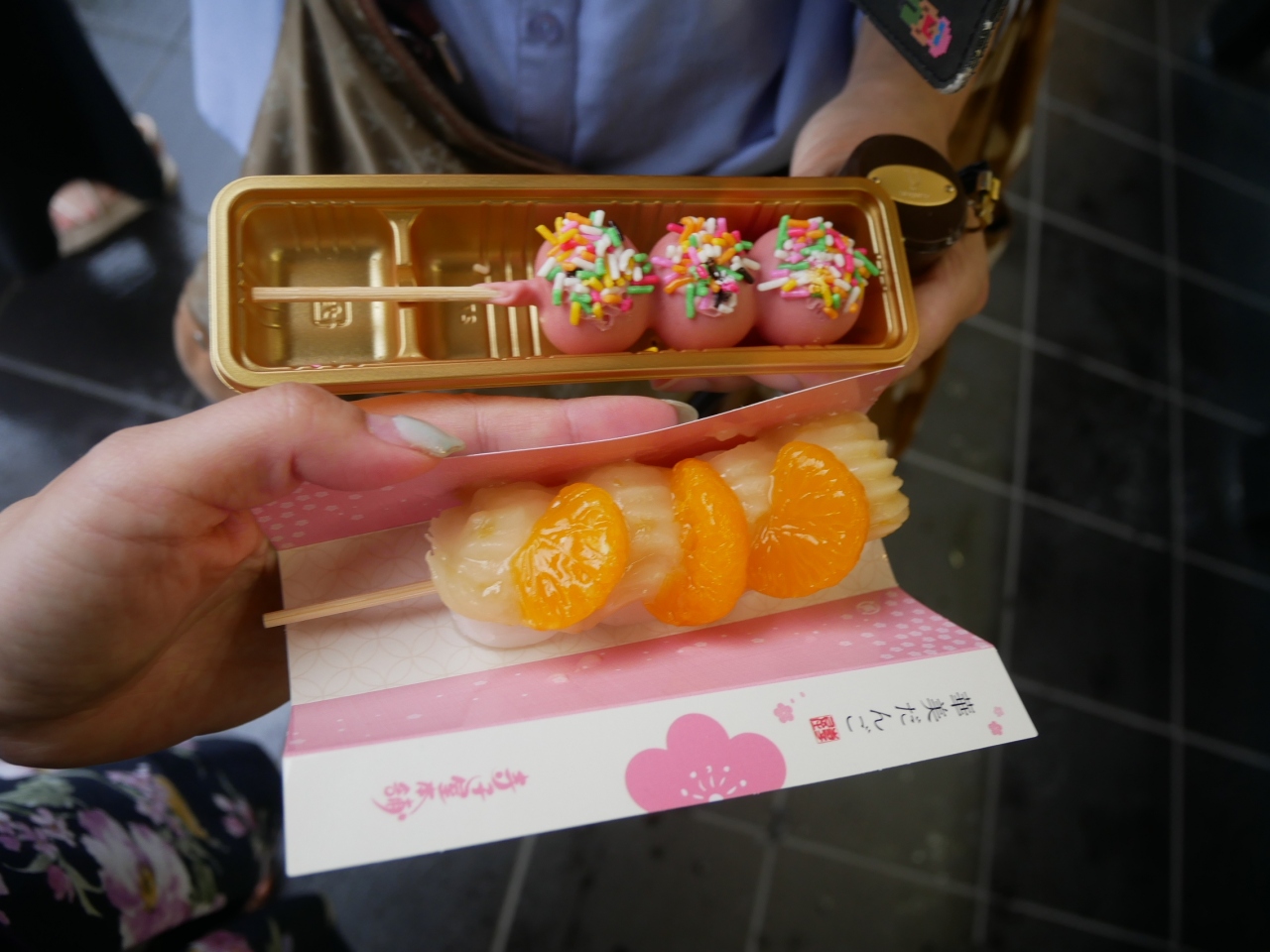 オーソドックスなみたらし団子などもありますが、フルーツやチョコレートを使った変わり種のお団子もあったので「夏みかん団子」に挑戦。