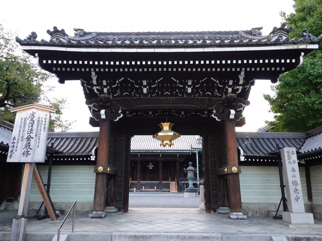 佛光寺は、地下鉄四条駅から東方面に歩いて数分の場所にあります。広大な敷地を有するお寺で創建は14世紀、真宗佛光寺派の本山です。親鸞聖人坐像を安置する大師堂(御影堂)は、入母屋造の木造建築で、その大きさには驚きましたが、鐘楼なども素晴らしく、見どころの多い境内です。一方で、あまり格式ばった感じのしないお寺で、境内を歩いていると庶民的な雰囲気を感じました。
