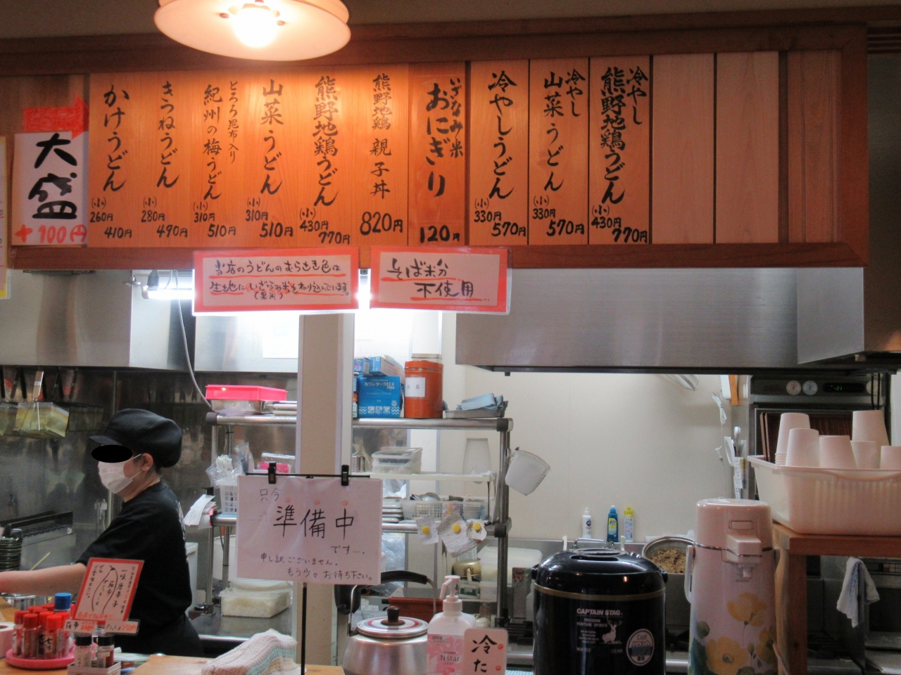 食堂ではうどんやおにぎりの他、地域特産のさんま寿司やめはり寿司などがありました。