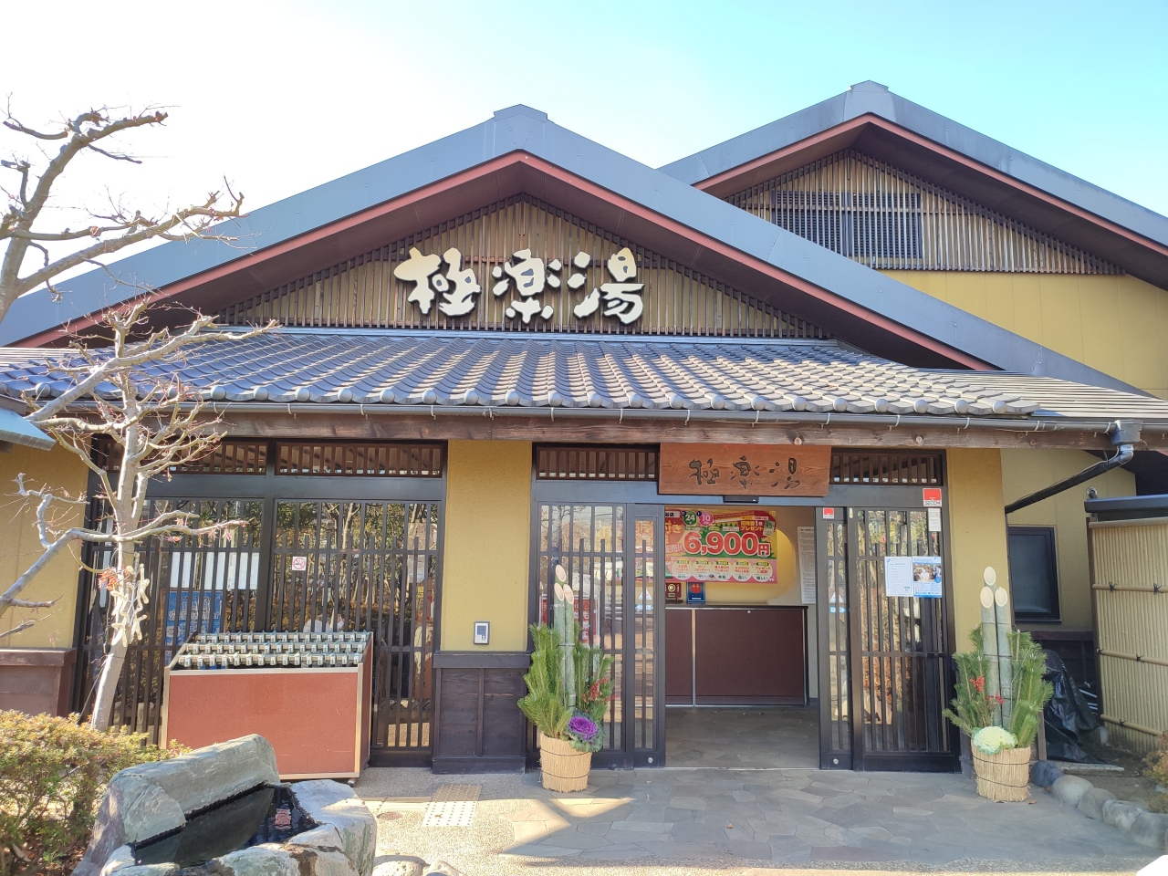 横浜市内にあるスーパー銭湯。極楽湯は、関東特有の黒い色の温泉がいいですね。