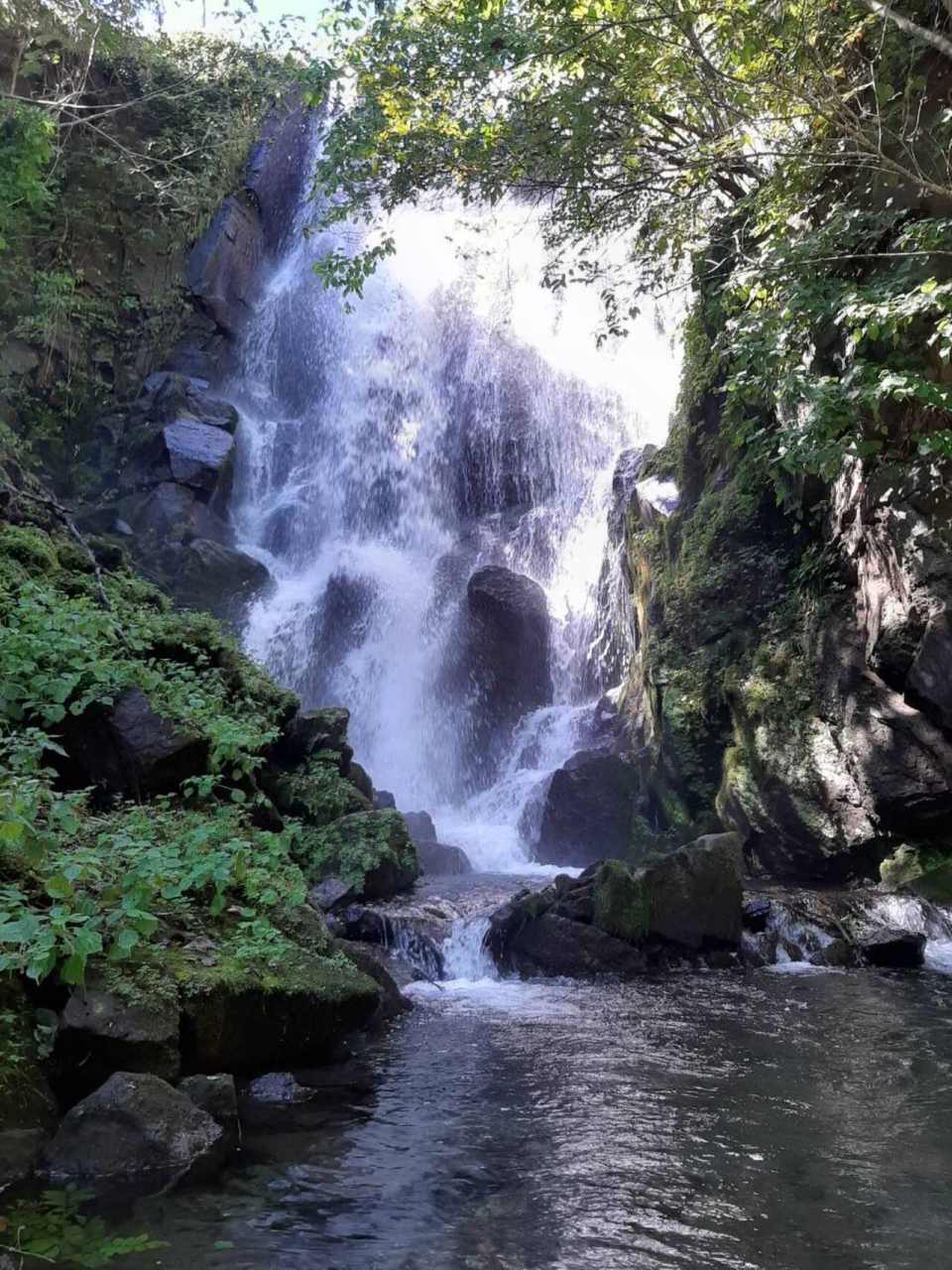とてもきれいな水が勢い良く流れ落ちて来て、清涼感や納涼感がいっぱいになりました。マイナスイオンも、たくさん感じ、パワーをもらった気がします。自然の美しさを、さわやかな風と青空の中で味わい、幸せな気持ちになりました。動画も撮ったのですが、やはり迫力がありました。