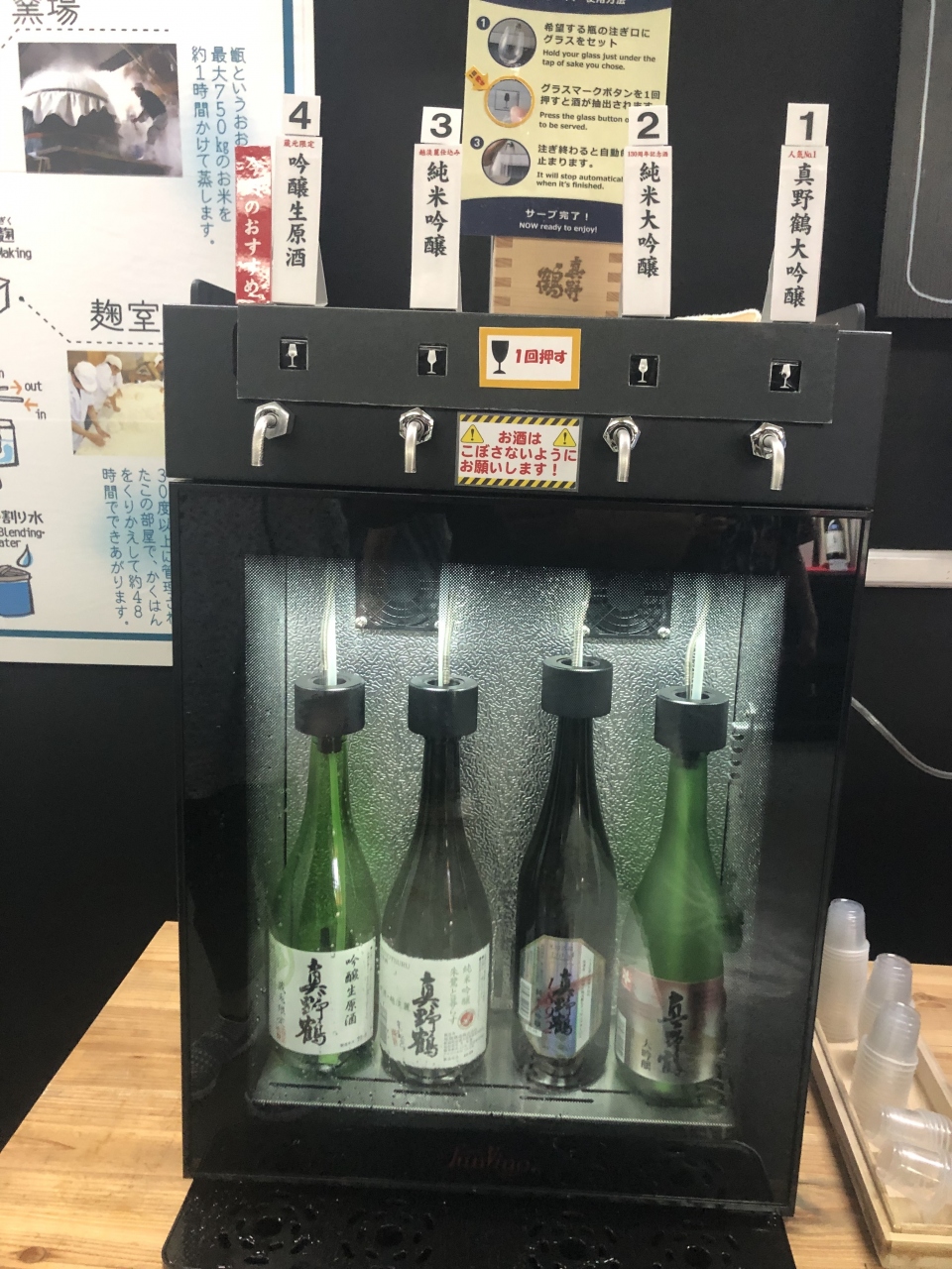 ツアーバスは佐渡金山、食事を済ませた後、尾畑酒造に立ち寄った。酒造見学は休止中とのことで、ビデオで解説を聞いた。エールフランスやベトナム空港のファーストクラスで提供される大吟醸や、四季島で出しているお酒など試飲できる。日本酒以外にも酒ケーキや和菓子なども購入できる。