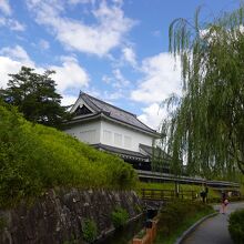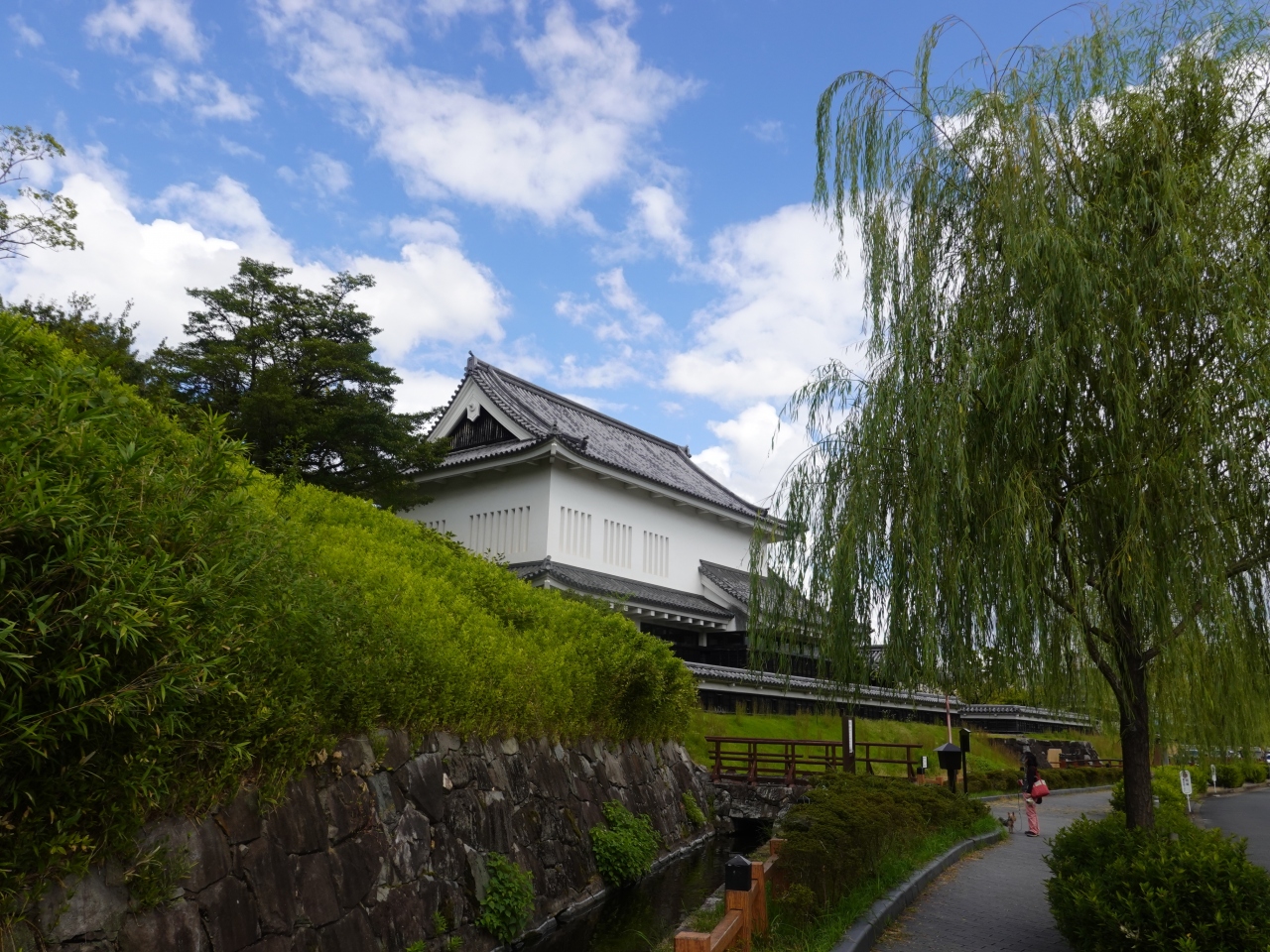 JR長岡京駅から南へ徒歩10分ほどの場所にある公園です。暦応2年築城の勝竜寺城を中心として整備されており、石垣やお濠のほか、明智光秀の娘たま(細川ガラシャ)の像や、数々の史跡など、見どころの多い公園です。またお濠に沿った通り沿いに柳の木が植えられており、風情ある光景を演出していました。
