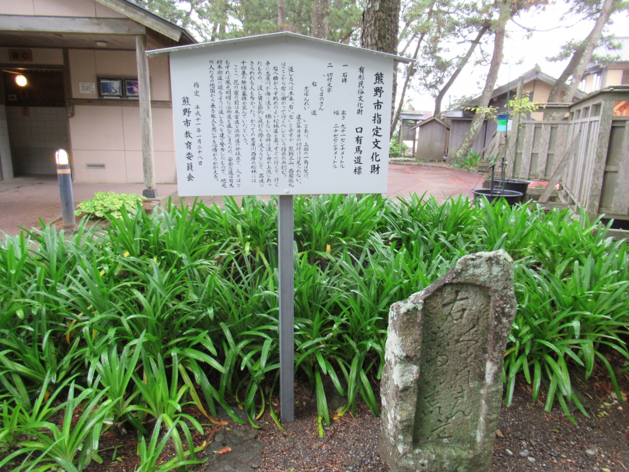 口有馬道標は、三重県熊野市の花の窟神社の西の曲がり角に立っていて、熊野市の有形民族文化財に指定されています。