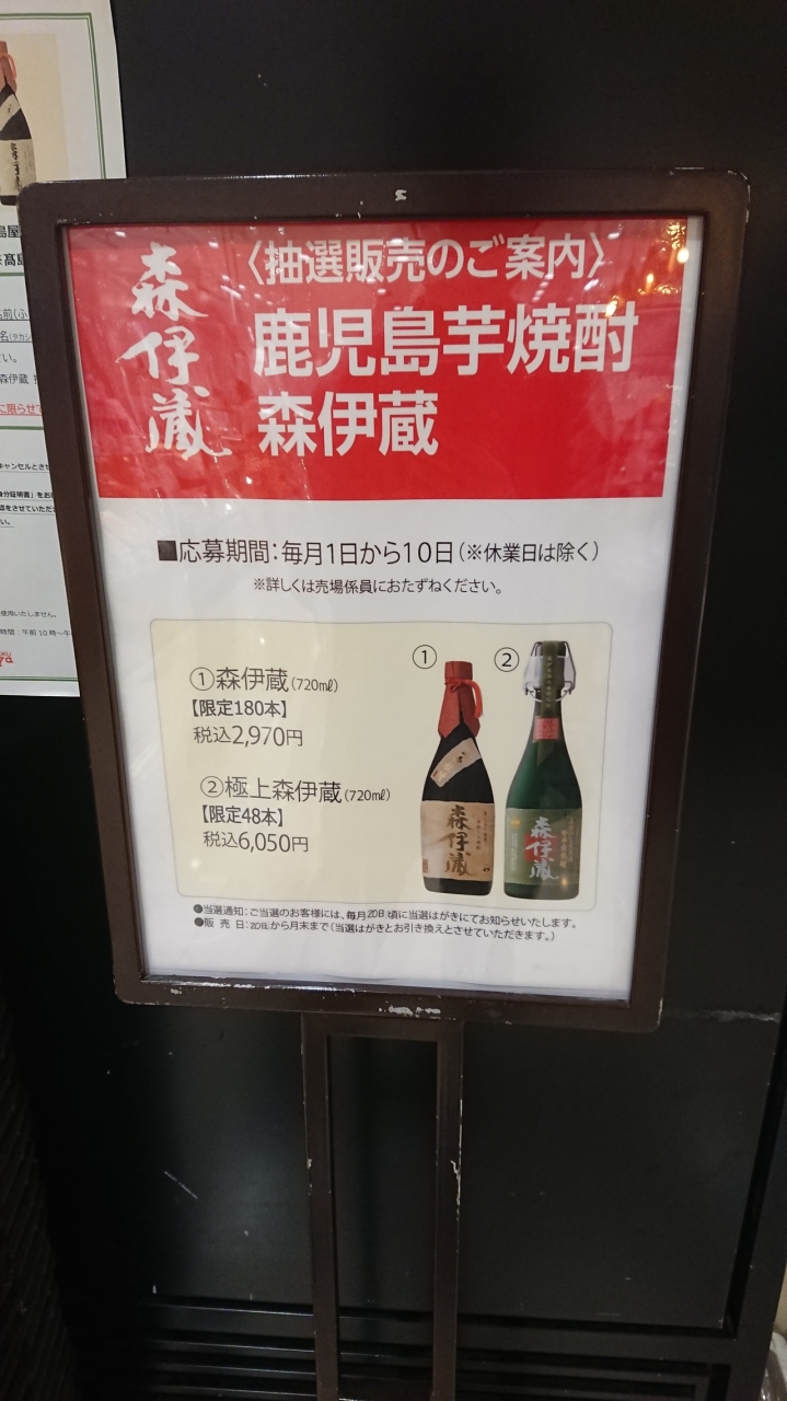 高島屋タイムズスクエアの内にあり、地下1階の和洋酒売り場では森伊蔵の抽選が行われていました。