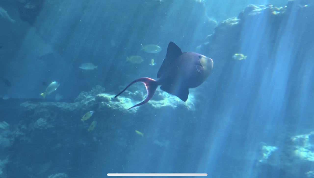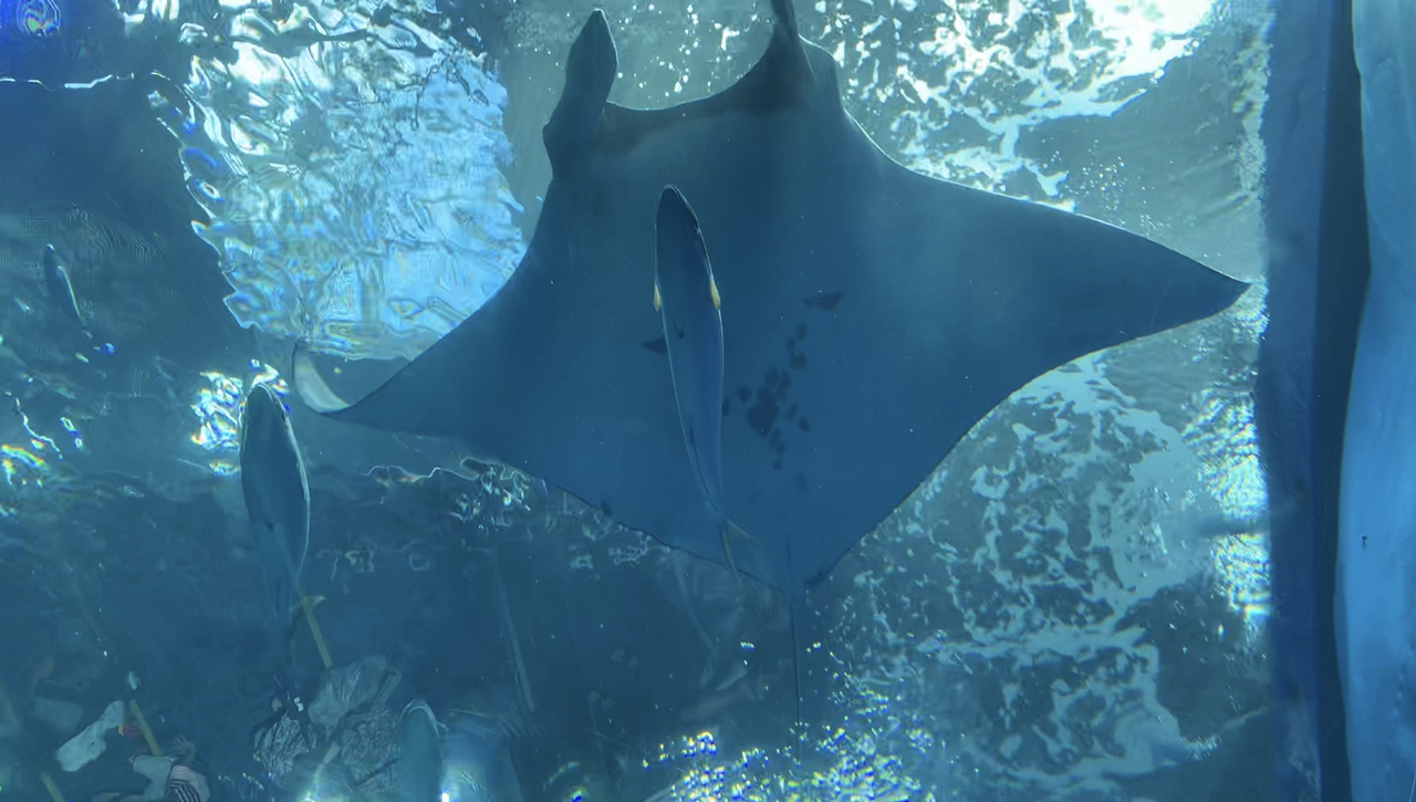 水槽の一部に下から見上げられる部分があり、頭の上をジンベエザメが通っていくのがとてもよかったです。