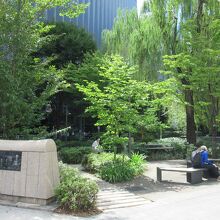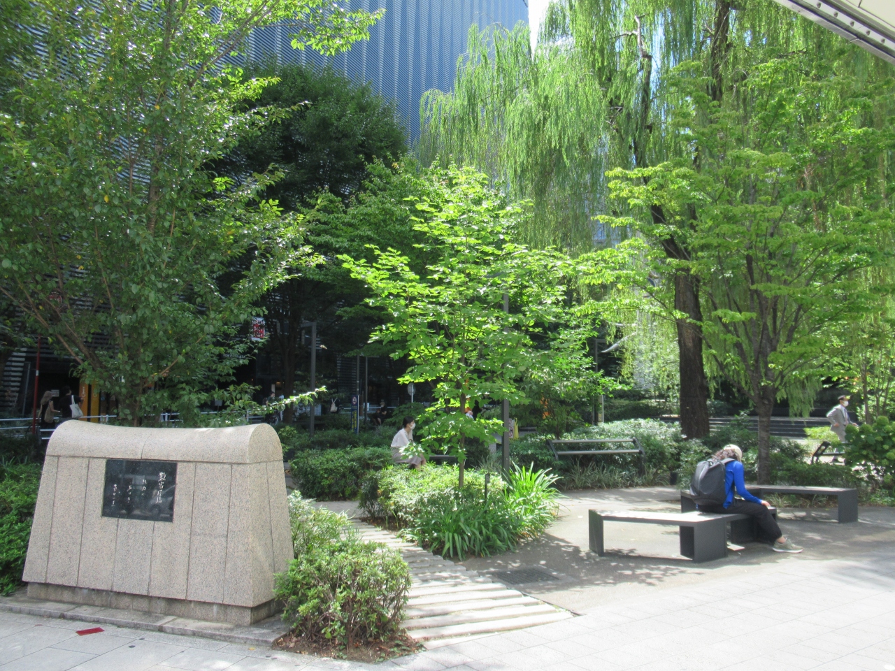 有楽町駅銀座口から5分ほど、晴海通りの両側に造られている数寄屋橋公園の新橋駅側エリアに建っています。江戸時代初めに江戸城の外堀に架けられた橋で、有楽町側には南町奉行所が置かれていたそうです。明治に入り銀座の入口として親しまれていたようですが、外堀埋め立てに伴い1958年に撤去されました。数寄屋橋の歴史を知ることができる貴重な碑です。