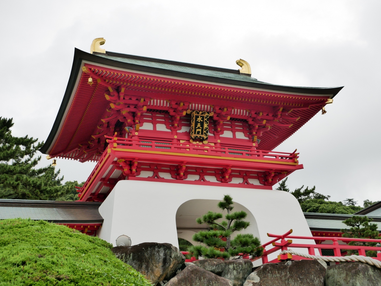 赤色と白色のコントラストが美しい水天門は、対岸門司からも見えます。