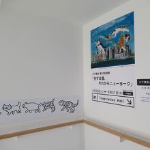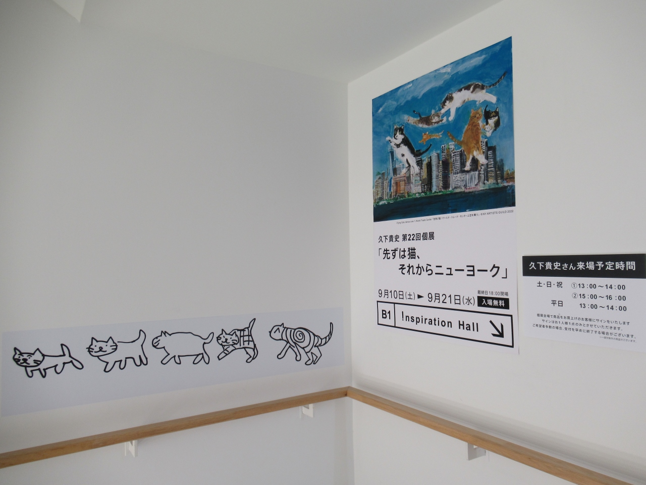 銀座通りの銀座2丁目交差点近くに建つ伊東屋にあります。フロアマップに伊東屋ギャラリーの名称がなかったので本館インフォメーションで聞くと、別館地下1階の一画に作品を展示しているスペースがあるとのことでした。別館前で迷っていると、本館のスタッフが来て、本館地下1階ホールで久下貴史個展を行っていると教えてくれました。開館前から行列ができたほどの盛況ぶりでした。様々な技法による作品が展示販売されていました。地下へ降りる階段にもイラストがあり、猫好きにはたまらない個展でした。1階の階段前に作品がモチーフになっている小物などの販売コーナーがありました。楽しいひと時でした。