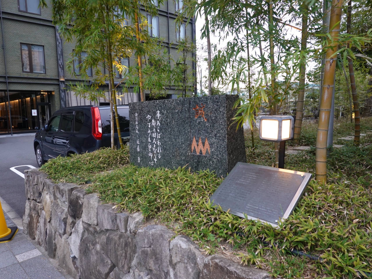 リーガロイヤルホテルの敷地に石碑と案内板があります