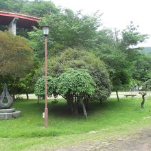 内山公園は蓮城寺に隣接したところにありました。この公園は春は桜、秋は紅葉の名所だそうです。ここは真名野長者の伝説の中心地です。公園の端には長者の里陶芸窯ありましたが、その前の休憩所には、真名野長者と般若姫の長~い絵物語が掲示してありました。般若姫は都に上る途中で亡くなった説と都で妃として幸せに暮らした説がありますが、ここの絵物語では亡くなった説の方でした。そして、臼杵石仏へと話が繋がっていました。また、休憩所の前に、登場人物などの像が置かれていましたが、素人の手作り感があって、ちょっと笑ってしまいました。