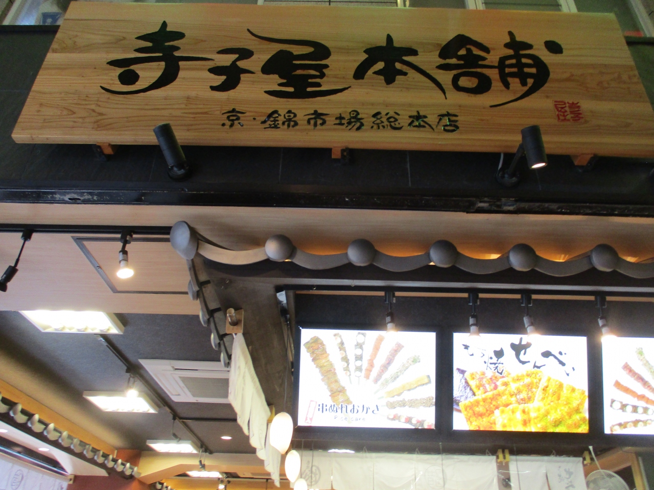 錦市場の西側入り口すぐのところにあるおせんべい・ぬれおかきなどのお店です。錦市場の他の観光地でもお店を見かける有名店です。できたてのおせんべいなど、1枚から買えます。味はいろいろあってどれにしようか迷います。ちょこっと食べたい時にちょうどいいです。