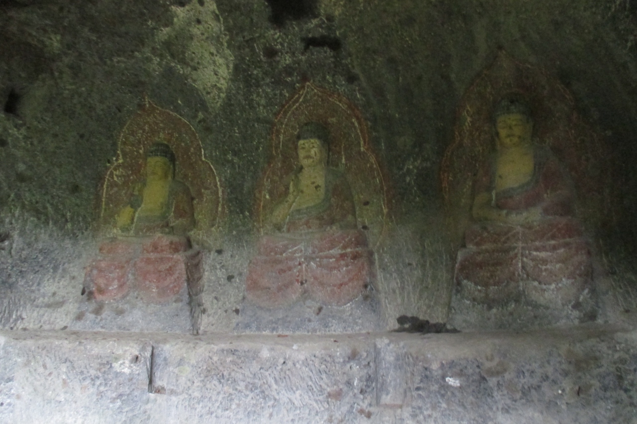 平安時代後期、緒方三郎惟栄の勢力がこの地域を治めていました。当時の遺跡として残るものとして、緒方三社や緒方宮迫東西石仏が上げられます。その宮迫東西石仏は緒方川の支流となる清田(せいた)川沿いに、約500mの間をおいて築かれたものです。ともに素朴な感じの磨崖仏です。これらを彫らせたのは緒方惟栄ではなかったとしても、緒方一族だったことは間違いないのでしょう。どこかにこれを彫った石工の名が刻まれていないのかなぁ・・・と思いました。