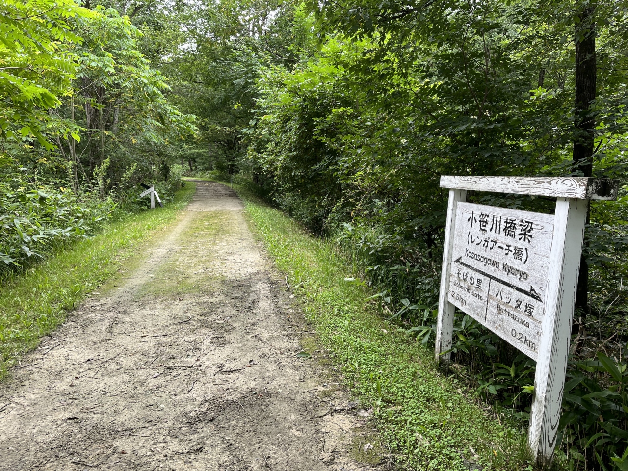 旧狩勝線の鉄道遺産です。場所はややわかりづらく、国道38号線沿いにある「のむらカレー」というお店がある所が入口です。そこから少し奥に入ると、小笹川橋梁があります。美しいレンガ造りのアーチ橋でした。明治38年に旧根室本線が下新内川を渡るために建設されたものだそうです。なお、橋梁の隣にある階段を上ると、狩勝ポッポの道に出られます。