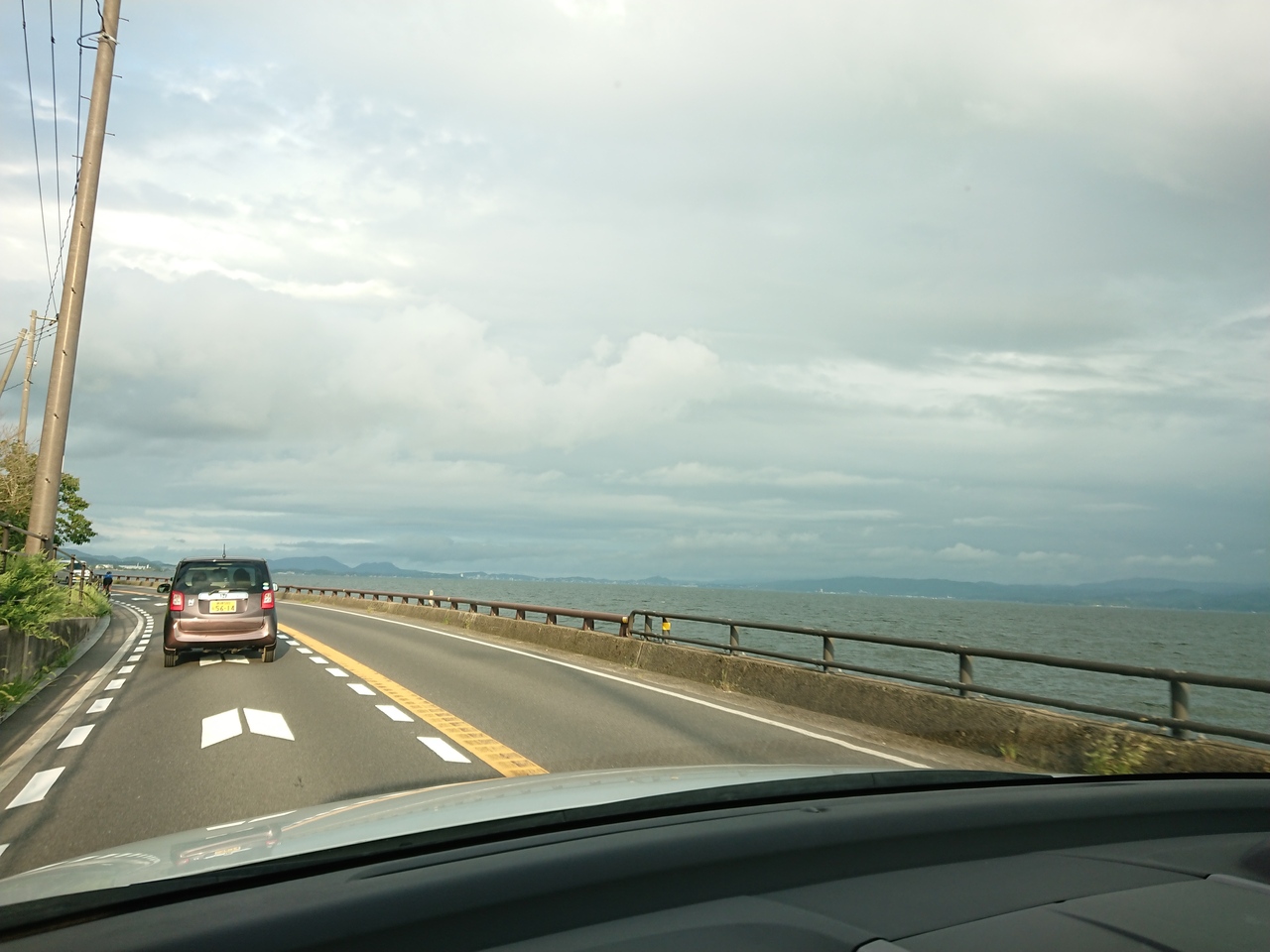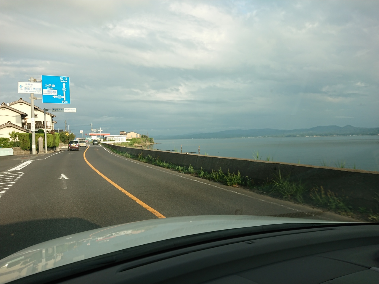 宍道湖の北側の道を走ってくれたおかげで、1時間弱の期間、宍道湖の湖畔をドライブできた。