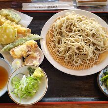 天もり1200円を注文しました。天ぷらはさくさくでボリューム満点。そばもおいしくて