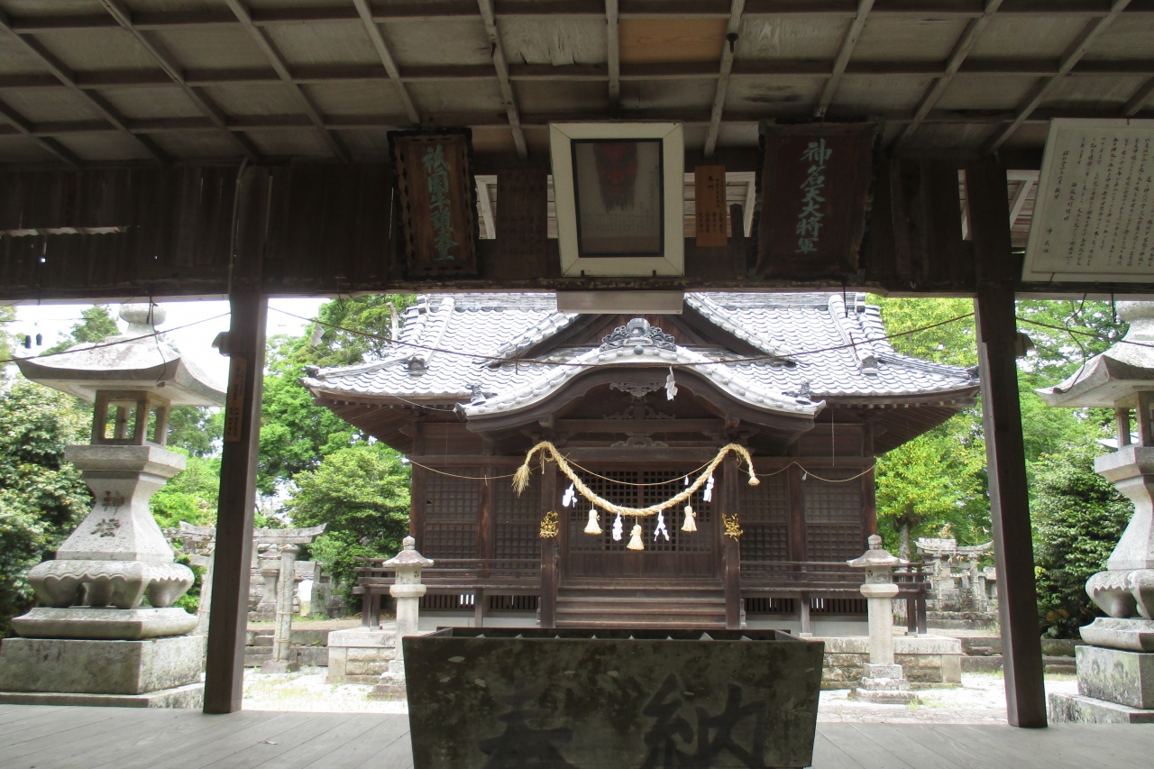 胎蔵寺のすぐ近くに、歴史のある岐部神社がありました。一緒にお参りすることをお勧めです。この神社は3つの宮が集合して出来たところです。ここは江戸時代の正徳年間(1711年~1716年)に、別々の場所に祀られていた天大将軍宮、牛頭宮、住吉宮の3つを集めて祀っているとのことです。創建時期が分っている天大将軍宮は1158年(保元3年)の創建とのことです。遷宮後は3宮はそれぞれ草葦屋根の小さな社だったそうですが、1866年(慶応2年)に現在の社へと大改修したのだそうです。なお、この神社の裏には、天満宮があり、並んで、殿地と思われるところがありました。神社の由緒の中に住吉宮の遷宮が書かれていないので、住吉宮の殿地でしょうか。