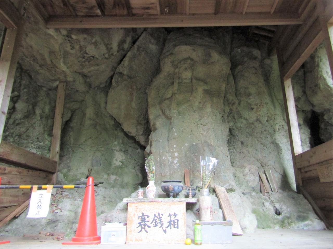 磨崖仏は覆屋の中に祀られていますが、長らく風雨に晒されていたため欠落や痛みも目立ちます。