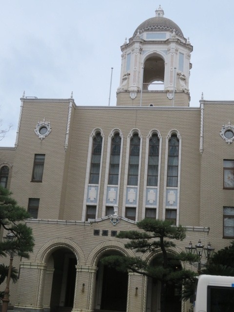 静岡の市役所は、青葉シンボルロードの突き当たりにあり近代的なビルですが、こちらは旧市庁舎ということです。すぐそばの静岡県庁と同じく昭和レトロ建築です。正面が3連アーチになっていて、中央部に教会の鐘楼のようなものが乗っかっています。色々混在している魅力的な建築物です。