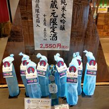 随時、蔵の見学も受け付けていて、自由に見学できました。蔵の二階に上がると、古い酒づくりの器具が展示されています。販売所の規模も大きく、蔵元限定の大吟醸酒や男はつらいよとのコラボ商品なども売っていました。店の駐車場もあり、立ち寄りにも便利です。