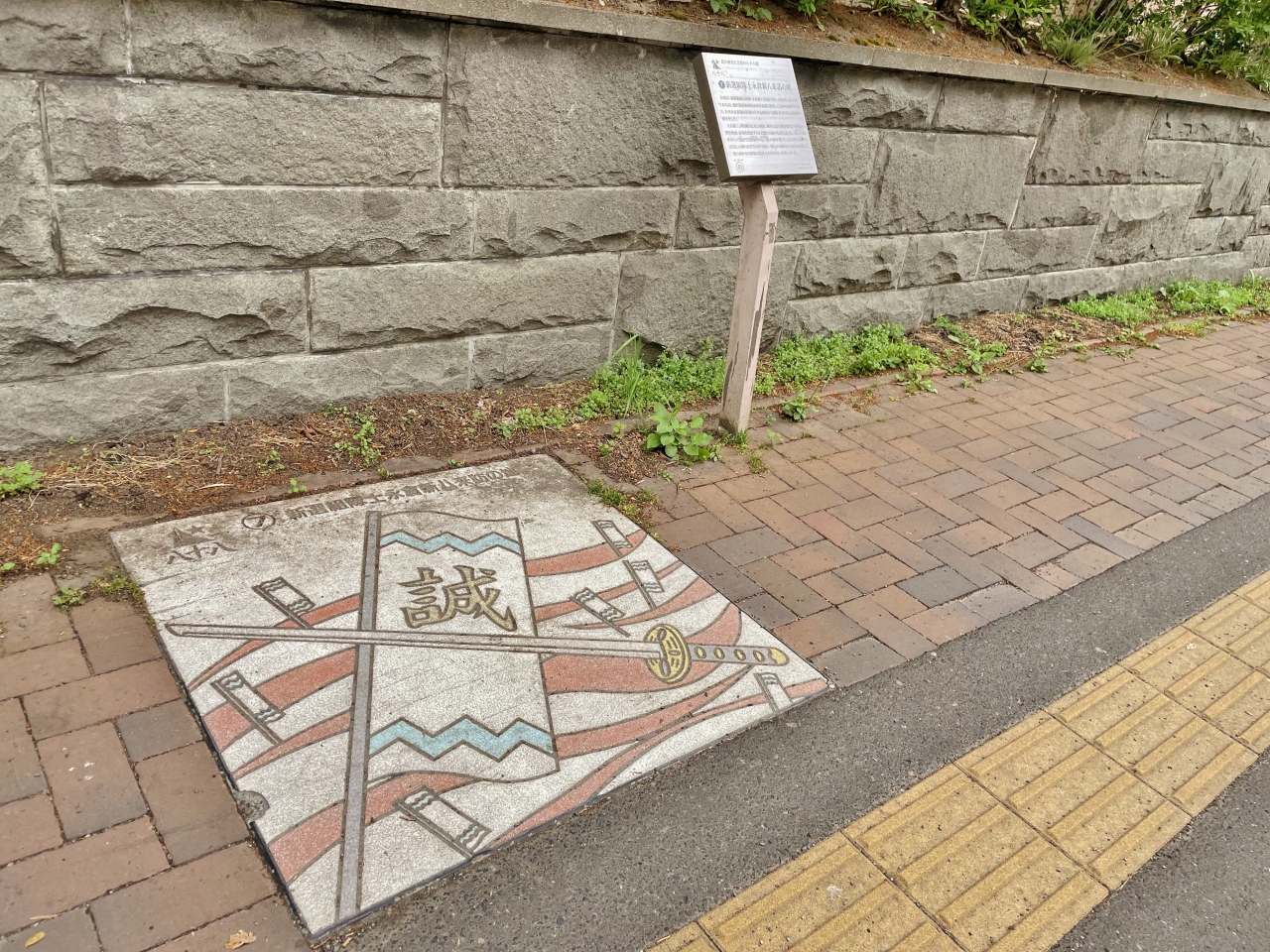 北海道大学の正門から少し北へ行くと、歩道上にプレートが埋め込まれた箇所があり、すぐそばに小さな説明板が立てられています。新選組きっての剣の使い手であったことから、東北帝国大学(現北海道大学)で剣術指南をしたとのことですが、実際訪れていた道場はこことは別の場所のようです。