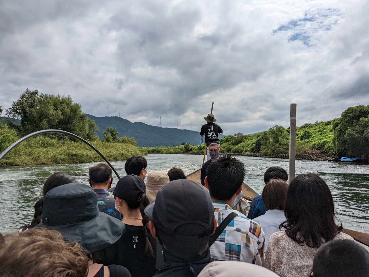 3人の船頭さんが前2人、後1人と漕ぐ位置を入れ替えながら漕いでいきます。前の船頭さんが面白いことを話していますが一番後ろなのでよく聞こえません。皆さん楽しそう・・・