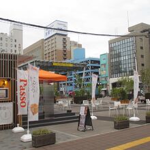 大分パルコの跡地利用として、整備されたのが祝祭の広場だそうです。命名権が設定されていて、現在は不動産会社が命名権者で「お部屋ラボ 祝祭の広場」と表示されていました。広場には移動可能な植栽が置かれ、ベンチも置かれていましたが、利用している人はいませんでした。広場の端に「祝祭テラス」という仮建屋がありました。どこかに出店する前に、お客さんの反応を確かめるトライアルが出来るのだそうです。訪れた時は、パン屋さんと牡蠣のお店がトライをしていました。