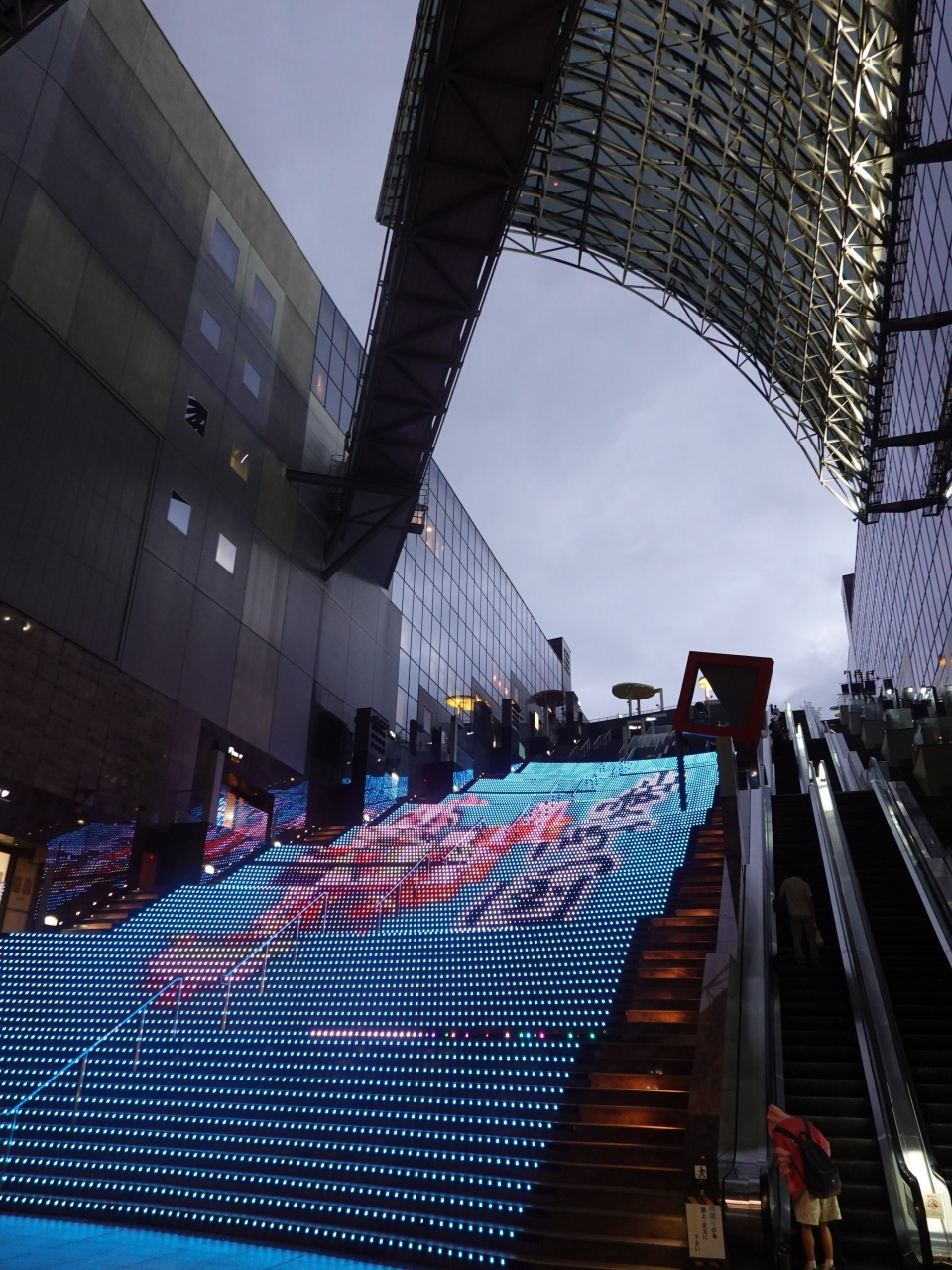 「The CUBE」の11階にあるレストランで食事をする際、エスカレーターと大階段を利用して大空広場まで歩きました。大階段のイルミネーションは時々刻々と変化するのと、その時々でモチーフが異なるので、何度足を運んでも飽きません。平日だったので人が少ないのも良かったです。