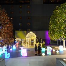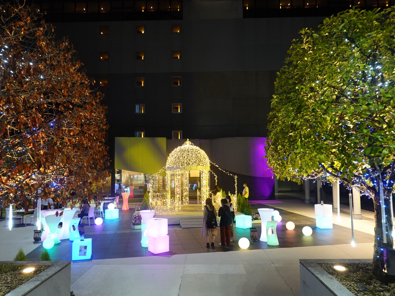 京都駅構内には「観光スポット」と呼べる箇所がいくつかありますが、「京都駅ビル 東広場」は、西側の大空広場に比べると常に人が少ないのが良いと思います。今回訪れた際も鮮やかなライトアップがなされていましたが、数えるほどしか人の姿はありませんでした。また東広場からは駅の吹き抜け空間を眼下に眺めることが出来て、こちらもお薦めです。