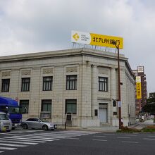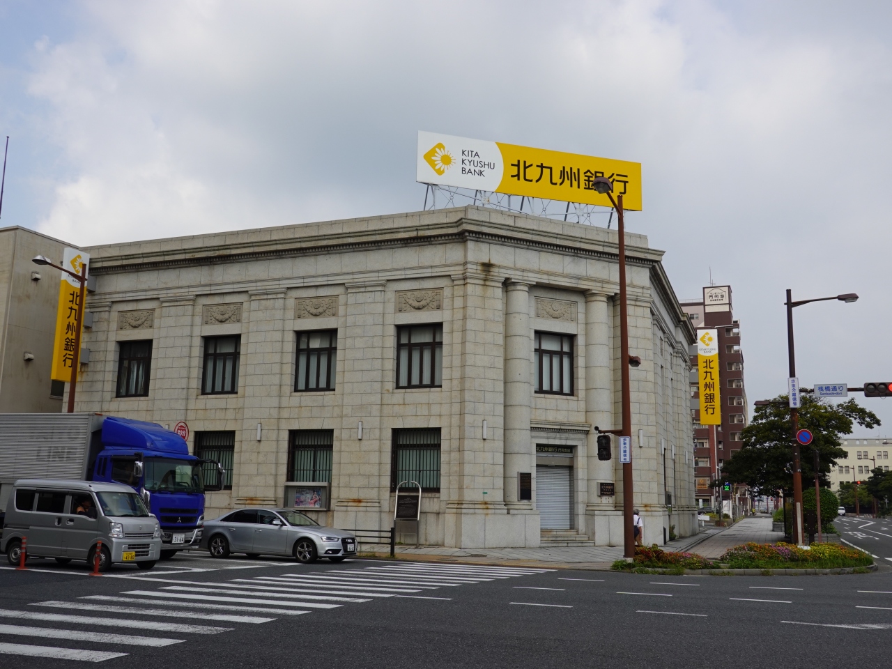 北九州銀行門司支店は、門司港レトロの中心的な通り「桟橋通り」を南東に進み、国道3号線と交わる場所にあります。外国為替専門の横浜正金銀行の支店として昭和9年に建てられた歴史的建造物です。北九州銀行の黄色を用いたロゴが、クラシカルな外観にやや似つかわしくないように感じましたが、建物自体は重厚感があり見栄えのするものでした。