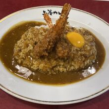 神田カレーグランプリに参加している店舗のためランチにて利用いたしました。今回は、海老フライトッピングにいたしました。スタンプ目的の訪問で、辛い物は苦手ですが、食べやすいカレーで生卵でさらにまろよかになりおいしくいただけました。海老フライも普通な感じです。店内はカウンター席のみとなっており、食券方式となっておりました。