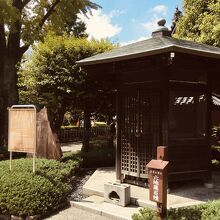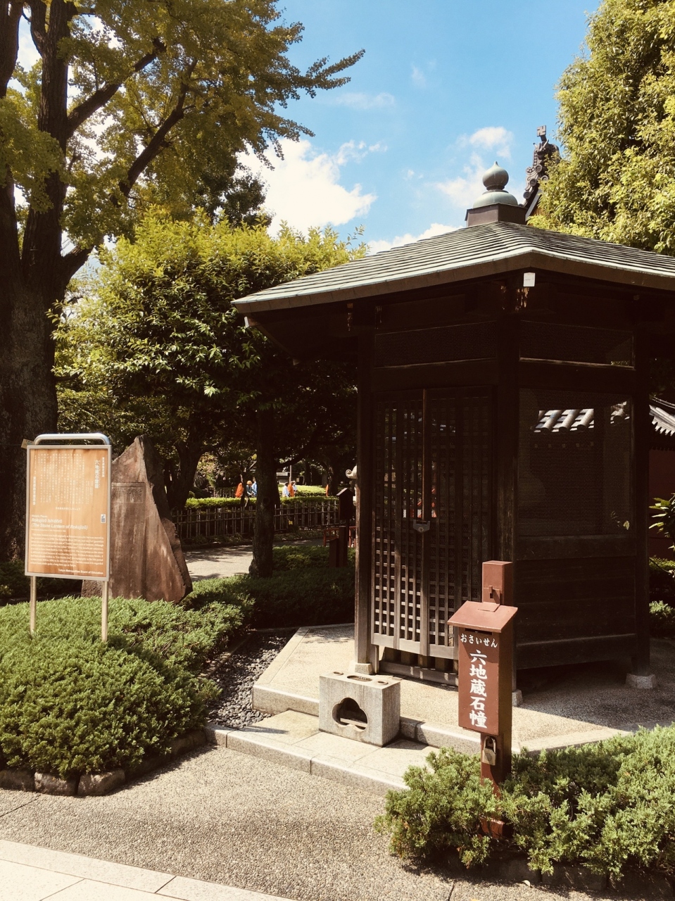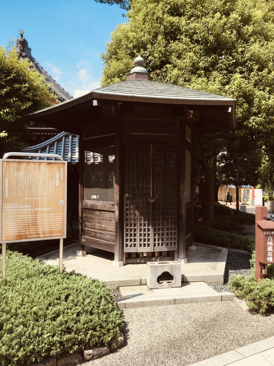 1170年とも1368年とも言われる建立で風化が激しいためか、木の建物の中にあり、除いて見学することとなります。石に刻まれた文字も解読不明で、都内でも古い時代の製作のものです。賽銭箱と線香立てがありました。