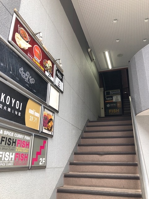 新宿駅から徒歩7分ほど、大久保駅よりにある、ビルの2階にあるスパイスカレー店。