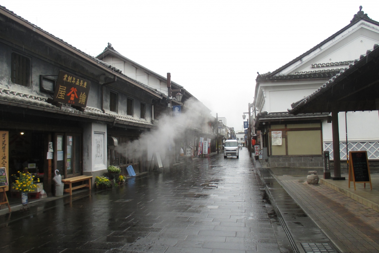 八町大路は、カニ醤油を始めとする趣のある建屋の店舗があり、散策をするだけで楽しい道でした。長さが300mあるという通りはきれいに石畳で整備されていましたが、これらの商店街の名称は中央通り商店街という、味も素っ気もない名称でした。1963年(昭和38年)に本町商店街と畳屋町商店街が1つになった時にこんな平凡な名になったそうです。なお、この八町大路を歩いていると、町娘のゆるキャラ?「お八栄ちゃん」がいくつも置かれていました。探してみるのも楽しいものです。
