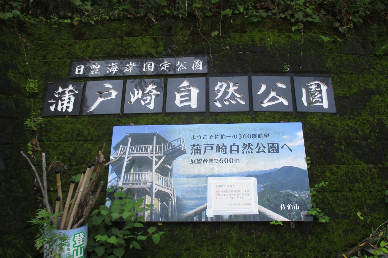 県道541号線を大浜海水浴場から南へ進んだ山の中に蒲戸崎展望台の入口がありました。その入口のところに「蒲戸崎展望台は老朽化により危険であるため現在利用出来ません。」となっていました。佐伯一の360°の眺望と書かれていて、期待を抱かせるところでしたが、仕方がありませんね。展望台までの遊歩道は閉鎖していないとのことでした。