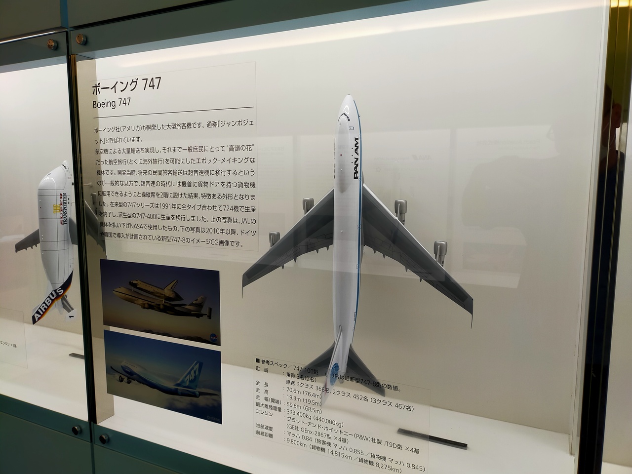 就航している飛行機の模型は、乗り物好きなら嬉しいと思います。飛行機の歴史も展示していて、ライト兄弟に始まる飛行機の黎明、第二次大戦のレシプロ全盛、そしてジェット機開発による大量輸送時代など、読んでいて面白かったです。高嶺の花だった海外旅行が、一般市民に身近になったのは旅客機の大型化がエポックだし、逆に燃費や騒音などによるその後の衰退も歴史です。